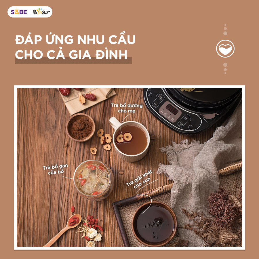 Ấm sắc thuốc Bear HTM-4H40X không chỉ giới hạn ở việc sắc thuốc bắc mà còn đa dạng về công năng, giúp chăm sóc sức khỏe toàn diện cho cả gia đình. Chỉ với một thiết bị, bạn có thể đáp ứng nhiều mục đích sử dụng: