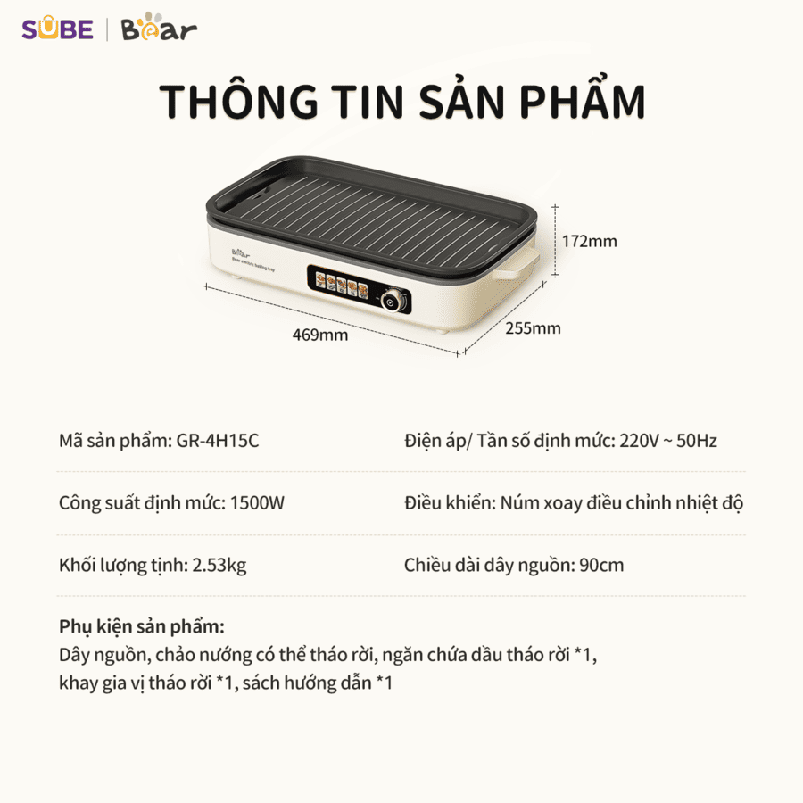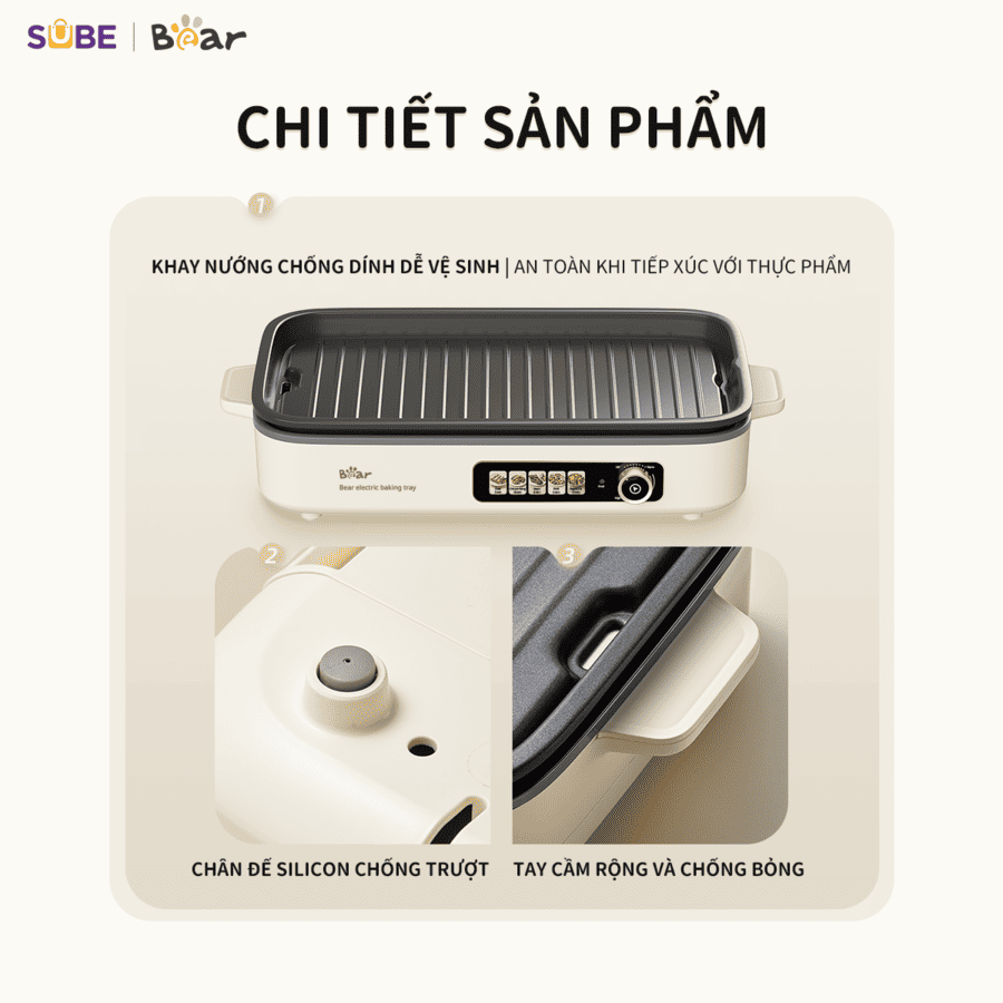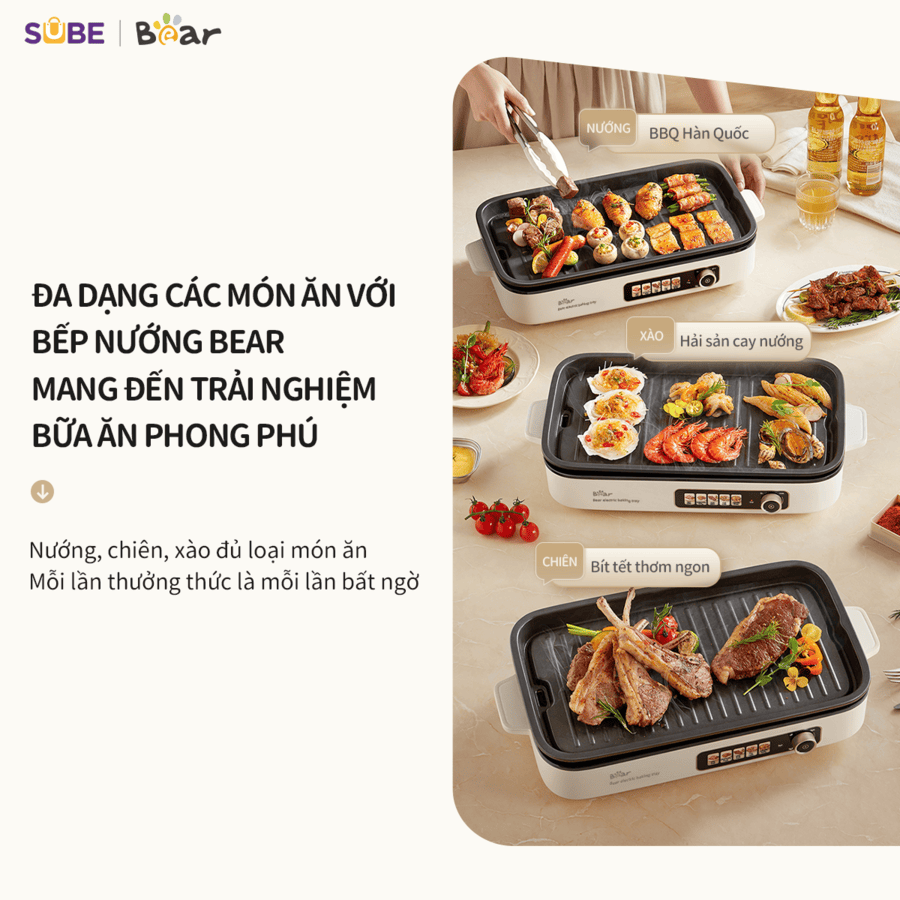 Bếp nướng điện Bear GR-4H15C không chỉ đáp ứng nhu cầu nấu nướng tiện lợi mà còn mang lại trải nghiệm sử dụng hiện đại, an toàn và tiết kiệm thời gian. Với thiết kế thông minh, chất liệu cao cấp và các tính năng vượt trội, sản phẩm này là người bạn đồng hành lý tưởng cho những bữa tiệc nướng ấm cúng cùng gia đình và bạn bè. Đặt mua ngay tại SUBE Việt Nam để nhận giá thành ưu đãi nhất.