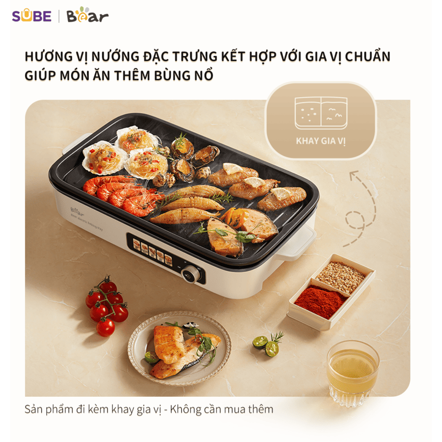 Bếp nướng điện Bear GR-4H15C được trang bị khay gia vị tiện lợi, mang đến trải nghiệm nấu nướng thú vị và dễ dàng hơn:
