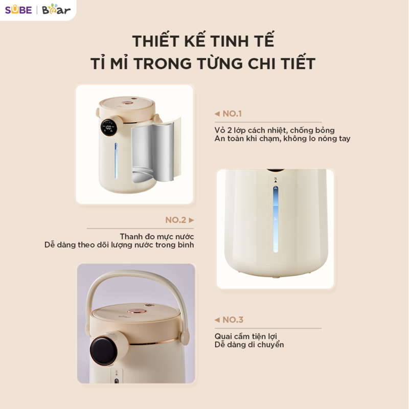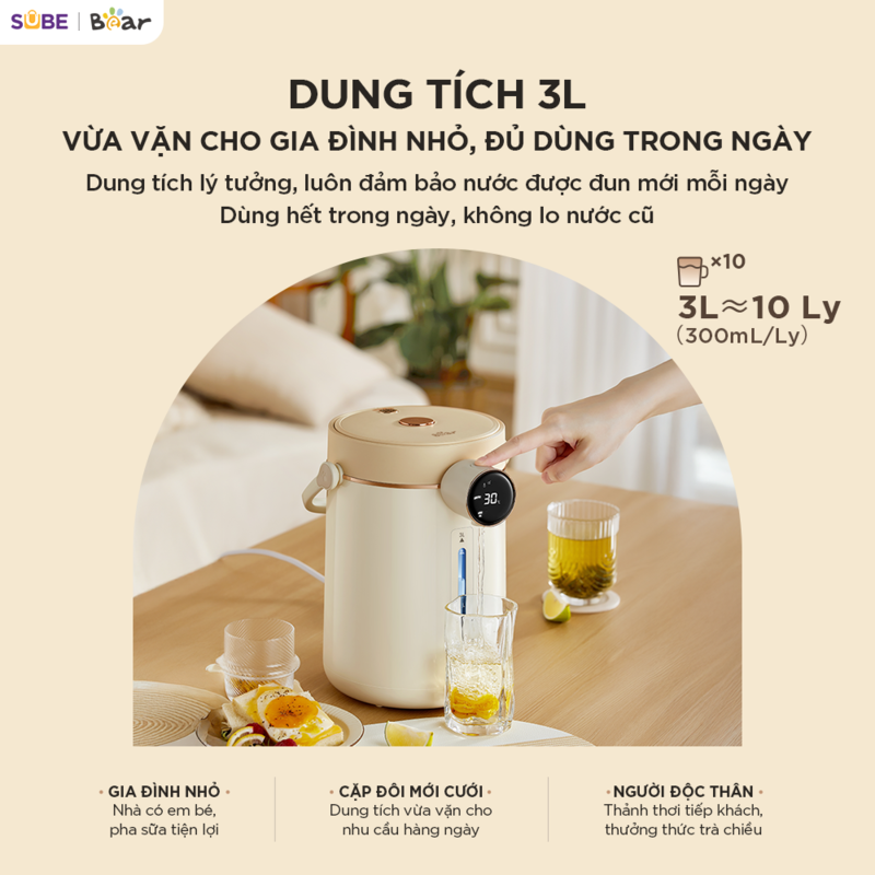 Bình thuỷ điện Bear 3L EWB-5H30C60 lựa chọn hoàn hảo cho mẹ bỉm sữa hoặc gia đình có người lớn tuổi cần chăm sóc