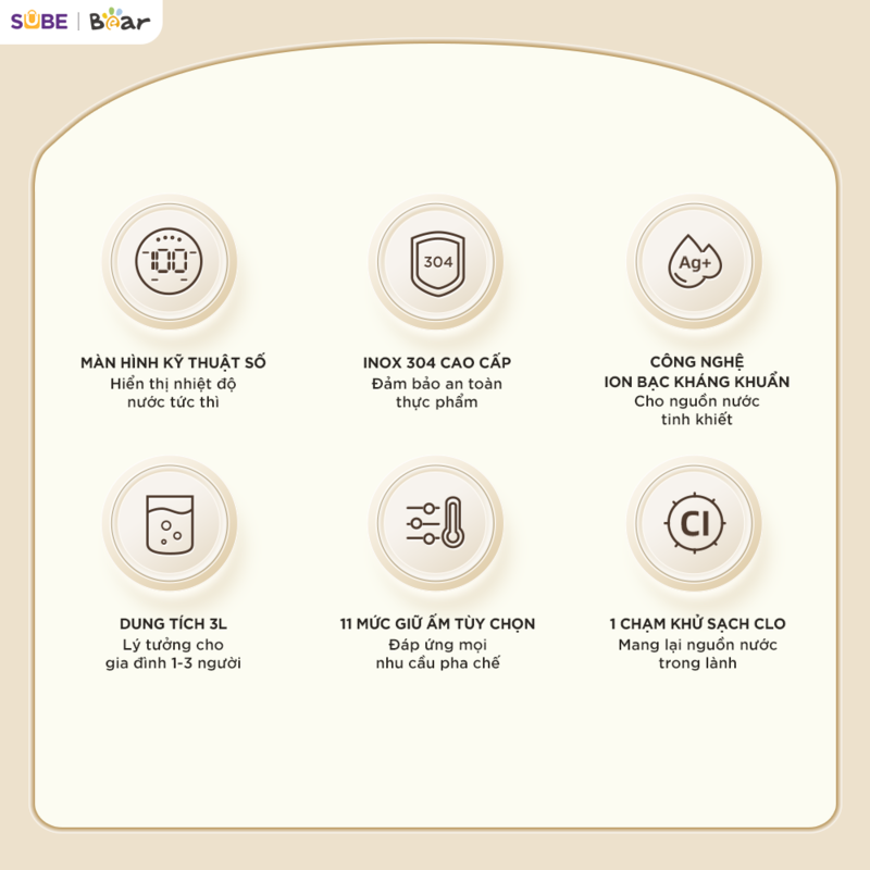 - 11 mức nhiệt độ khác nhau: Tùy chỉnh dễ dàng từ 40°C đến 100°C, đáp ứng mọi nhu cầu sử dụng nước nóng. Mẹ bỉm dễ dàng pha sữa cho con mà không lo ảnh hưởng đến dinh dưỡng, ông bà pha mật ong, bố uống cà phê… chưa bao giờ tiện lợi đến thế:
