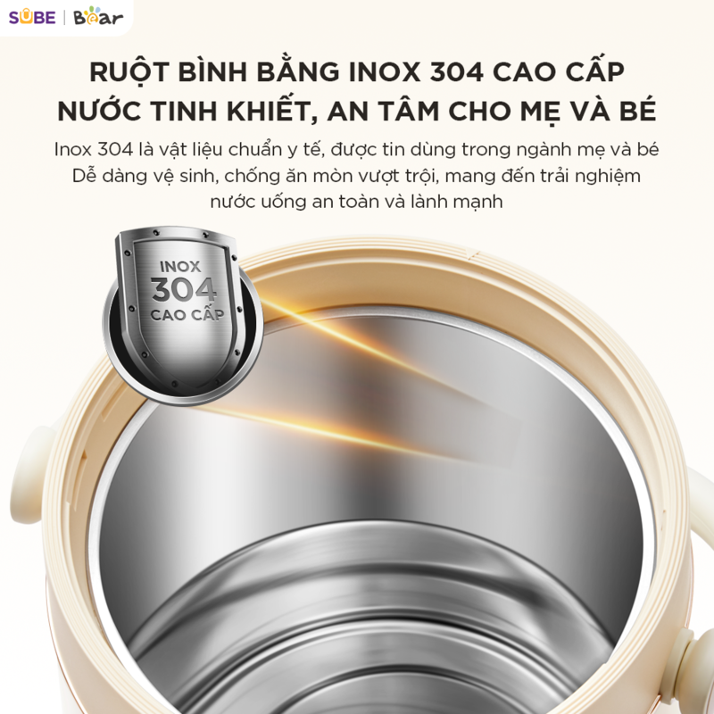 Với những đồ gia dụng tiếp xúc trực tiếp với thực phẩm, an toàn luôn là yếu tố được đặt lên hàng đầu. Bình thuỷ điện Bear 3L EWB-5H30C60 đáp ứng điều này một cách hoàn hảo: