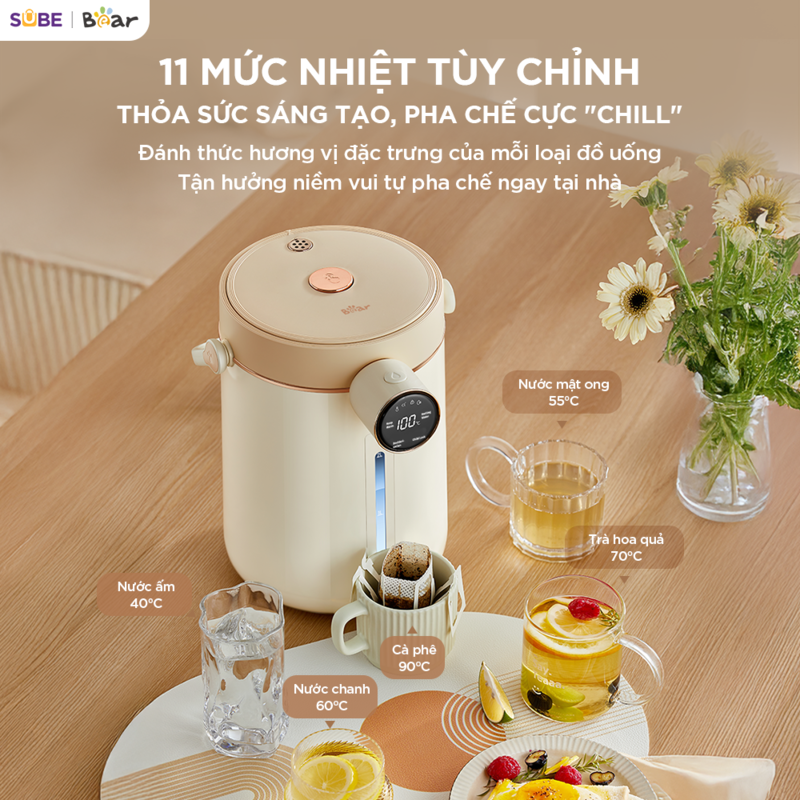 Không còn cảnh “ước lượng” nhiệt độ, với Bình thuỷ điện Bear 3L EWB-5H30C60, việc pha trà, pha sữa hay pha cà phê chuẩn nhiệt trở nên dễ dàng hơn bao giờ hết: