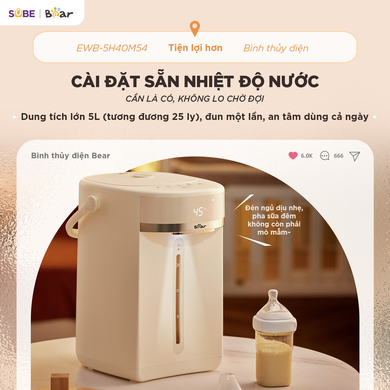 Gia đình đông người, nhu cầu sử dụng nước nóng cao, những lần đun nước lắt nhắt trở thành nỗi ám ảnh? Chiếc bình thủy điện Bear 5L EWB-5H50M54 sẽ xua tan mọi lo âu.
