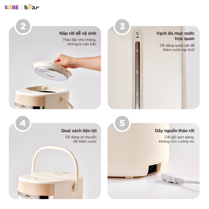 Bình thủy điện Bear 5L EWB-5H50M54 là thiết bị tiện lợi giúp bạn đun nước sôi, pha trà, cà phê và giữ ấm hiệu quả. Dưới đây là hướng dẫn cách sử dụng bình thủy điện Bear chỉ với 6 bước đơn giản:
