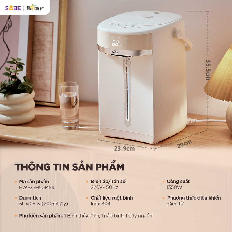 Dễ dàng pha trà thơm trọn vị với bình thủy điện Bear 5L EWB-5H50M54
