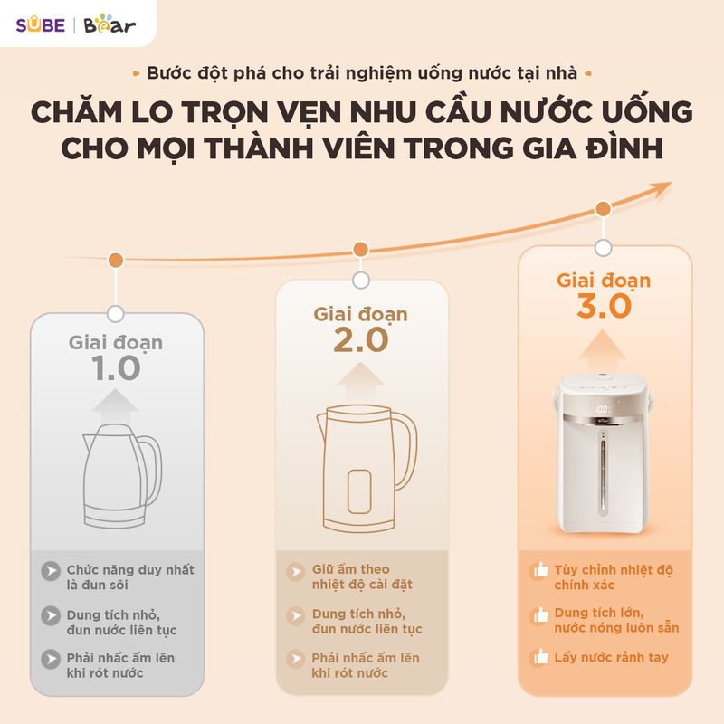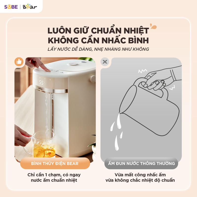 - Chăm sóc khẩu vị riêng của từng thành viên trong gia đình: Mỗi người có một sở thích khác nhau về nhiệt độ nước uống. Với chiếc bình thủy điện Bear, mỗi thành viên trong gia đình có thể tùy chỉnh nhiệt độ theo ý muốn để có được những ly nước ngon nhất, phù hợp với khẩu vị của mình.