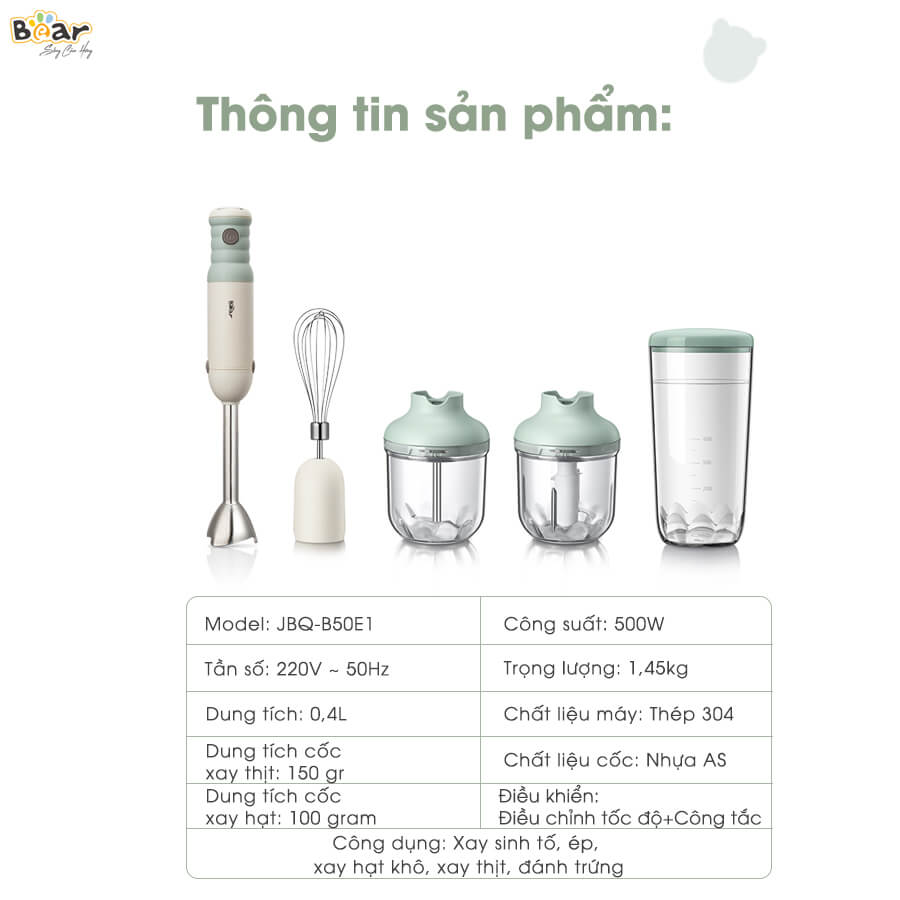 Hướng dẫn sử dụng bộ máy xay cầm tay đa năng Bear JBQ-B50E1