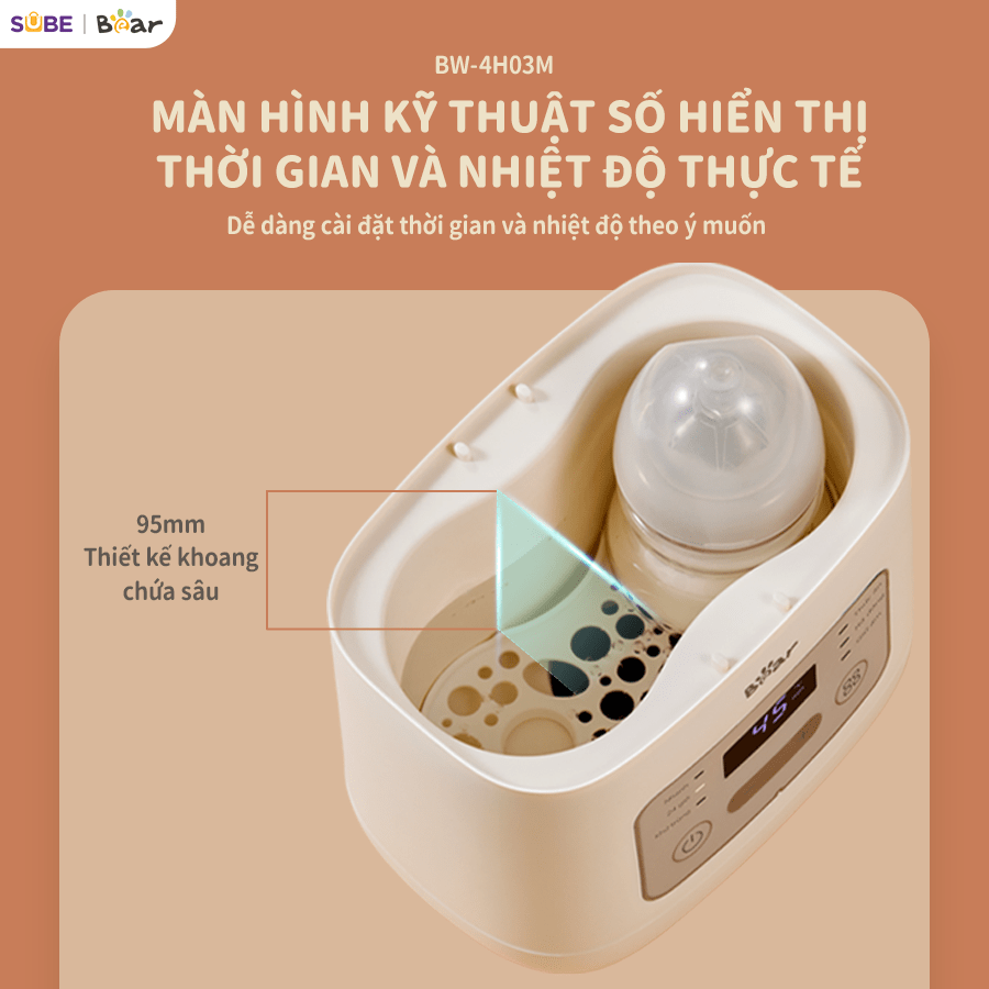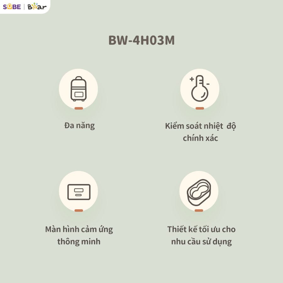 - BW-4H03M có khả năng duy trì nhiệt độ ổn định, tránh tình trạng sữa bị nóng quá mức, giúp bảo vệ bé khỏi nguy cơ bị bỏng hoặc khó chịu cho dạ dày.