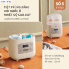 | Khử trùng | Tối đa 15 phút | Tiệt trùng bình sữa bằng hơi nước nhiệt độ cao 360 độ, loại bỏ mọi vi khuẩn ảnh hưởng sức khỏe. |