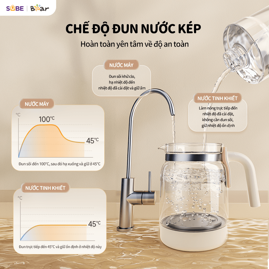 | Giữ ấm | 45°C | 45°C | 35°C – 90°C | 72h | Giữ ấm nước để pha, hâm sữa cả ngày |