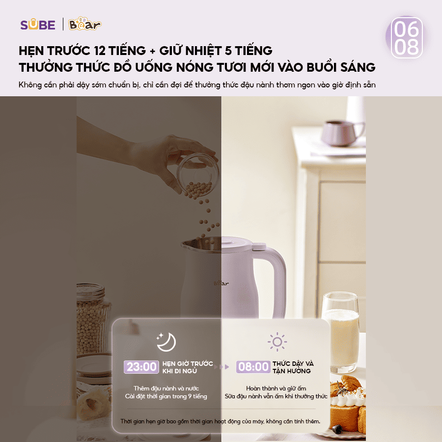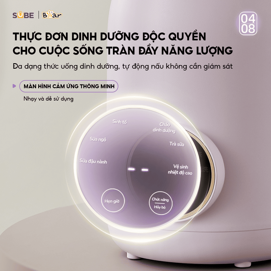 Không chỉ dừng lại ở 6 chức năng, SUBE còn cung cấp máy làm sữa hạt Bear 1L SB-SH09Q 9 chức năng. Bạn thỏa sức chế biến đồ uống nóng (sữa hạt, sữa ngô), đồ uống lạnh (sinh tố, smoothie), đồ ăn (cháo, súp)…