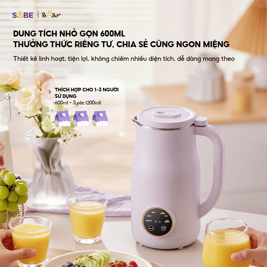 - Dung tích phù hợp: Với dung tích 600ml, máy có thể xay nấu được lượng nguyên liệu vừa đủ cho cá nhân sử dụng cả ngày hoặc gia đình nhỏ 2-3 người.