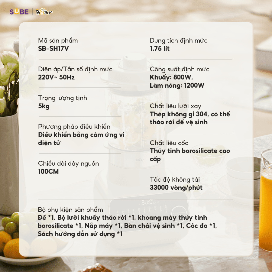 Với những ưu điểm vượt trội về thiết kế, tính năng và chất liệu, máy làm sữa hạt Bear 1.75L SB-SH17V xứng đáng là sự lựa chọn hoàn hảo dành cho gia đình quan tâm đến sức khỏe. Còn chần chừ gì nữa mà không nhanh tay đặt mua máy làm sữa hạt tại SUBE Việt Nam để tận hưởng những ly sữa hạt thơm ngon, bổ dưỡng.
