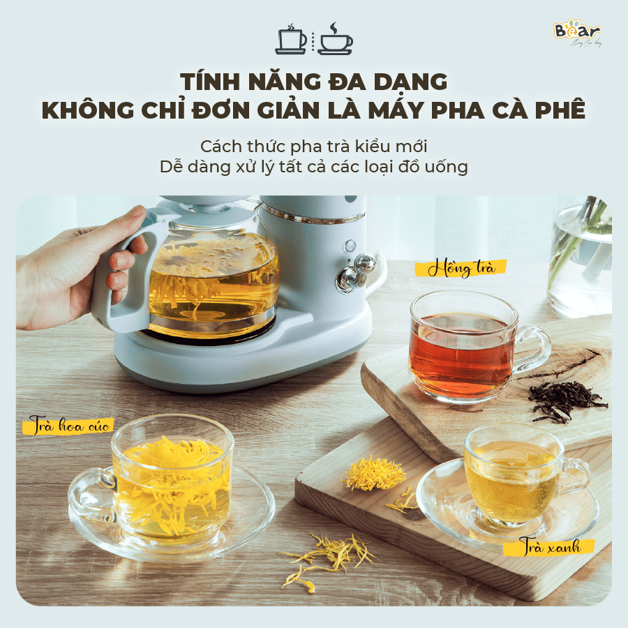 Với máy pha cà phê Bear SB-CF06A, bạn không chỉ pha được cà phê mà còn có thể pha trà dễ dàng và tiện lợi.