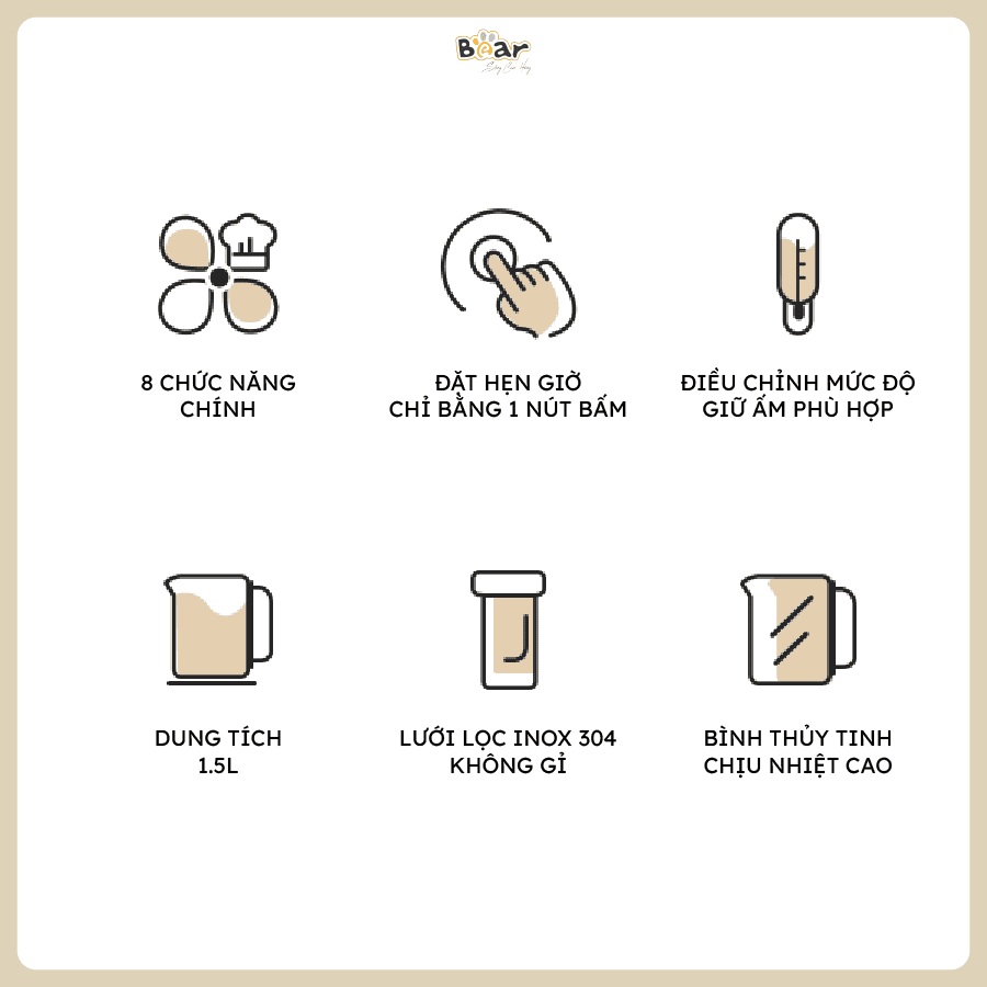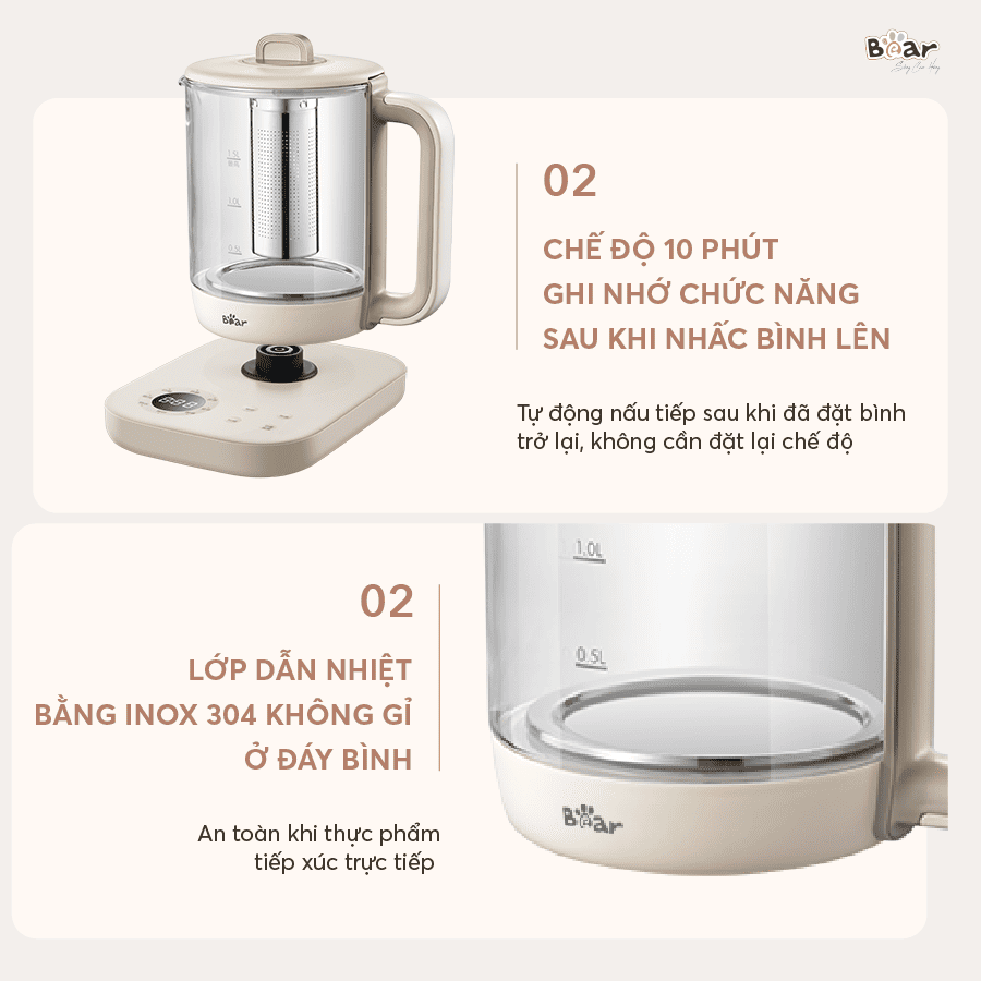 Không chỉ dừng lại ở những chức năng đa dạng, máy pha trà Bear SB-PT15K còn sở hữu nhiều ưu điểm vượt trội về thiết kế, chất liệu và tính năng. Cùng khám phá 7 đặc điểm nổi bật của chiếc máy pha trà thông minh này nhé!