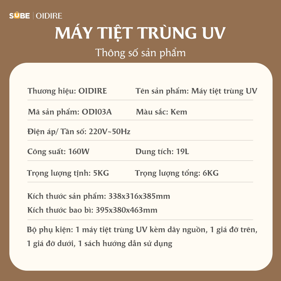 Có máy tiệt trùng UV OIDIRE ODI03A, công cuộc chăm con an toàn của mẹ nhẹ nhàng hơn rất nhiều. Mẹ sẽ có nhiều thời gian chơi với con và chăm sóc bản thân. Sản phẩm đang được SUBE phân phối chính hãng với giá cực tri ân, cùng với đó là nhiều quà tặng hấp dẫn và chính sách bảo hành 12 tháng. Nhanh tay đặt mua để công cuộc chăm bé “thảnh thơi” hơn nào mẹ ơi!