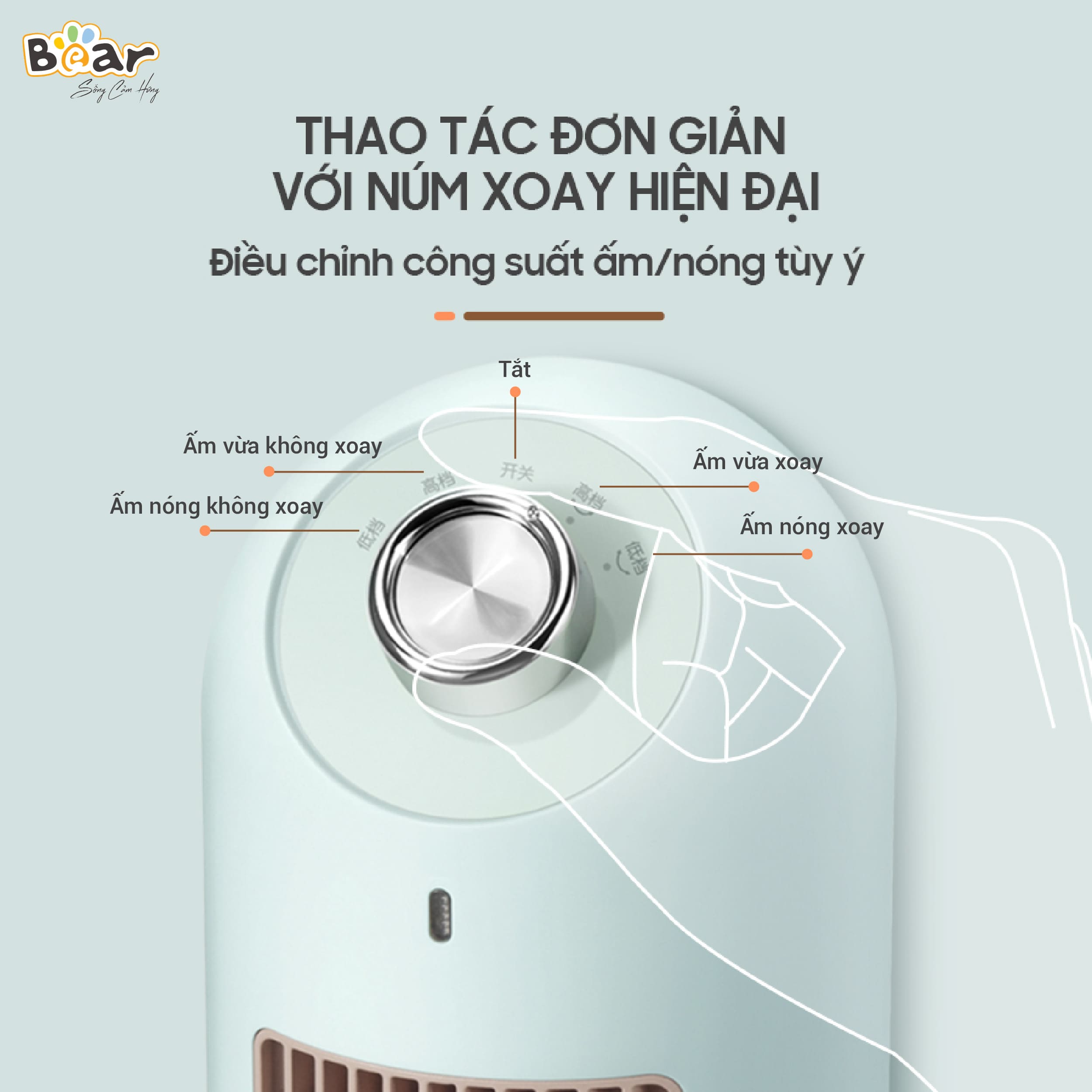 Máy sưởi Bear DNQ-C20B1 được trang bị núm vặn điều chỉnh với 4 chế độ hoạt động, cho phép bạn tùy chỉnh theo nhu cầu sử dụng: