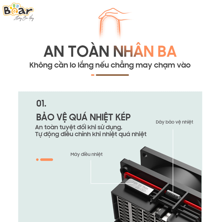 - Cảm biến tự ngắt khi quá nhiệt: Máy sưởi gốm Bear DNQ-C20B1 được trang bị cảm biến nhiệt thông minh. Khi nhiệt độ của quạt vượt quá mức cho phép, cảm biến sẽ tự động ngắt điện, ngăn ngừa nguy cơ cháy nổ do quá nhiệt. Tính năng này sẽ đảm bảo an toàn cho người sử dụng, đặc biệt là trong những trường hợp bạn quên tắt quạt hoặc khi có sự cố về điện.