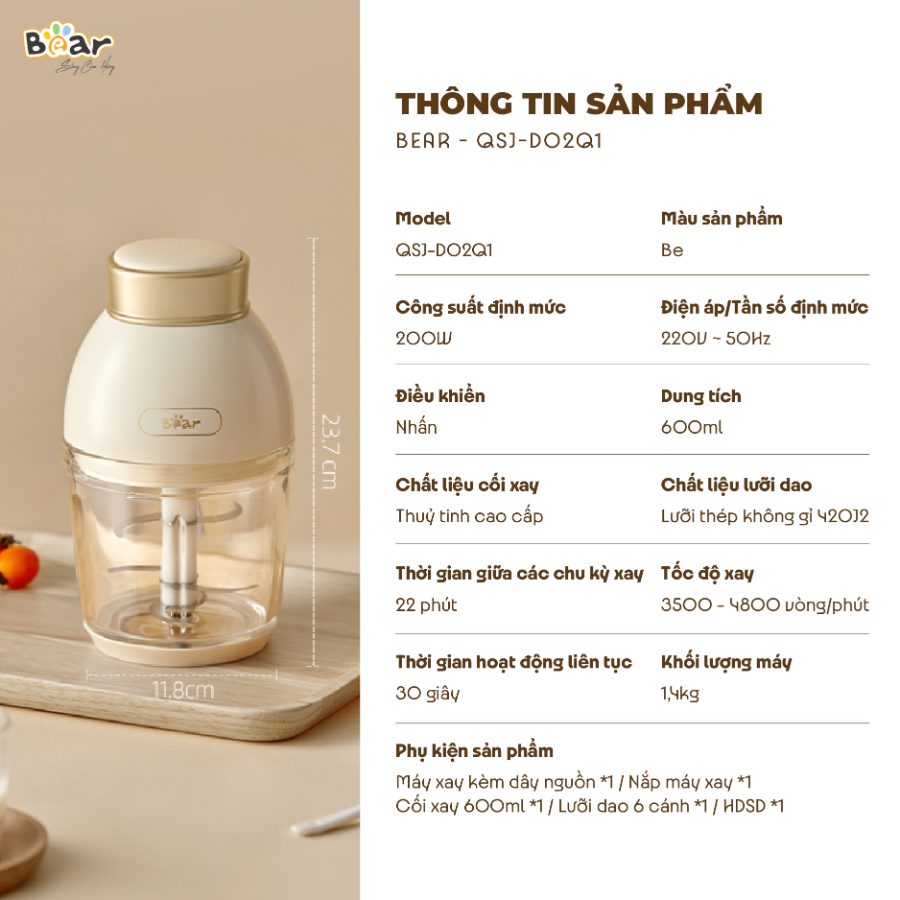 Máy xay ăn dặm Bear 0.6L QSJ-D02Q1 có dung tích 600ml cực hợp lý cho mẹ và bé