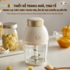 - Trong suốt, dễ quan sát: Mẹ dễ dàng kiểm soát độ nhuyễn mịn của thực phẩm, từ đó điều chỉnh thời gian xay cho phù hợp với từng loại nguyên liệu và độ tuổi ăn dặm của bé.