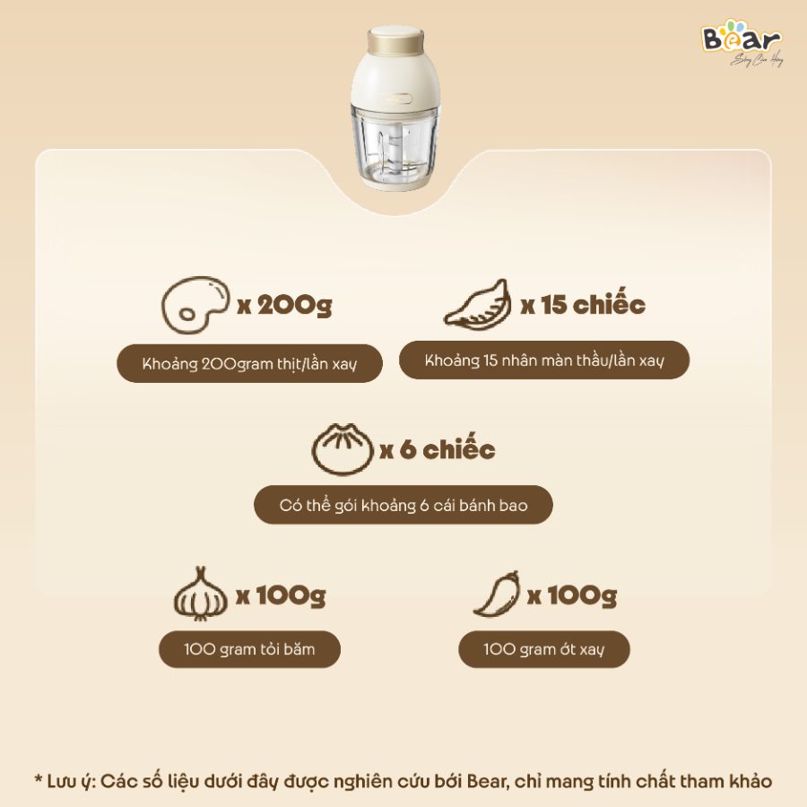 - Xay lượng nhỏ, tiện lợi và chống lãng phí: Với khả năng xay được khoảng 200g thịt, máy xay 600ml đáp ứng đủ nhu cầu chế biến 4-6 bữa ăn cho bé (mỗi bữa khoảng 30 – 50g thịt cho bé từ 6 – 12 tháng tuổi). Mẹ chế biến đủ lượng thức ăn cần thiết trong ngày, không lo bị dư thừa, bé luôn được thưởng thức món ăn tươi ngon và giàu dinh dưỡng. Nếu bé nhà ăn ít, mẹ có thể tham khảo máy xay ăn dặm Bear GR-B03V8 với dung tích nhỏ chỉ 0.3L, vừa đủ cho mỗi bữa ăn của bé.