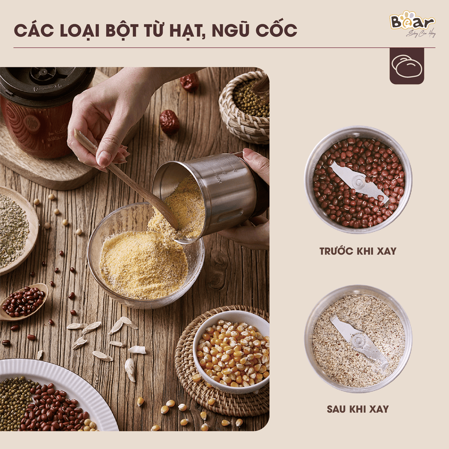 • Xay hạt ngũ cốc: bột ngô, đậu xanh, cafe, gạo..