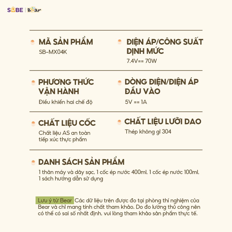 Máy xay sinh tố Bear SB-MX04K cute, giao diện ưa nhìn