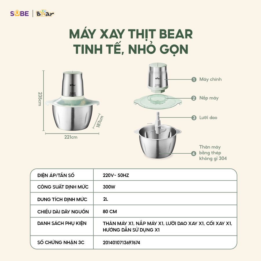 Máy xay thịt Bear CH-4H03F giúp bạn yên tâm hơn về vệ sinh thực phẩm trong quá trình chế biến.