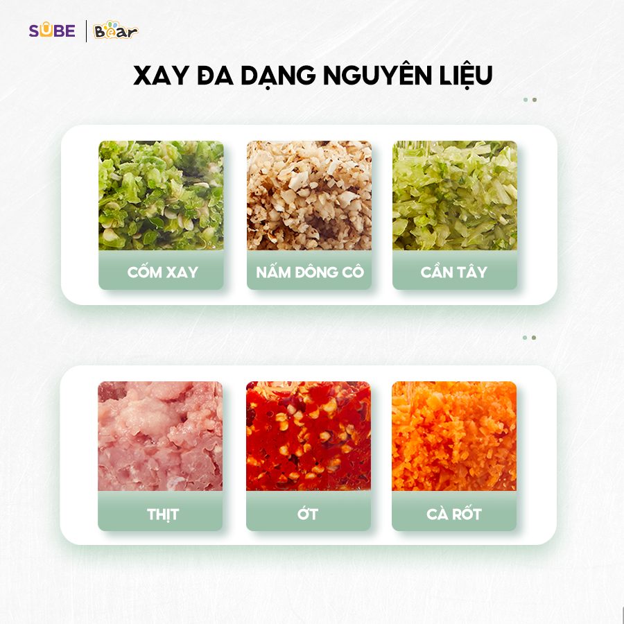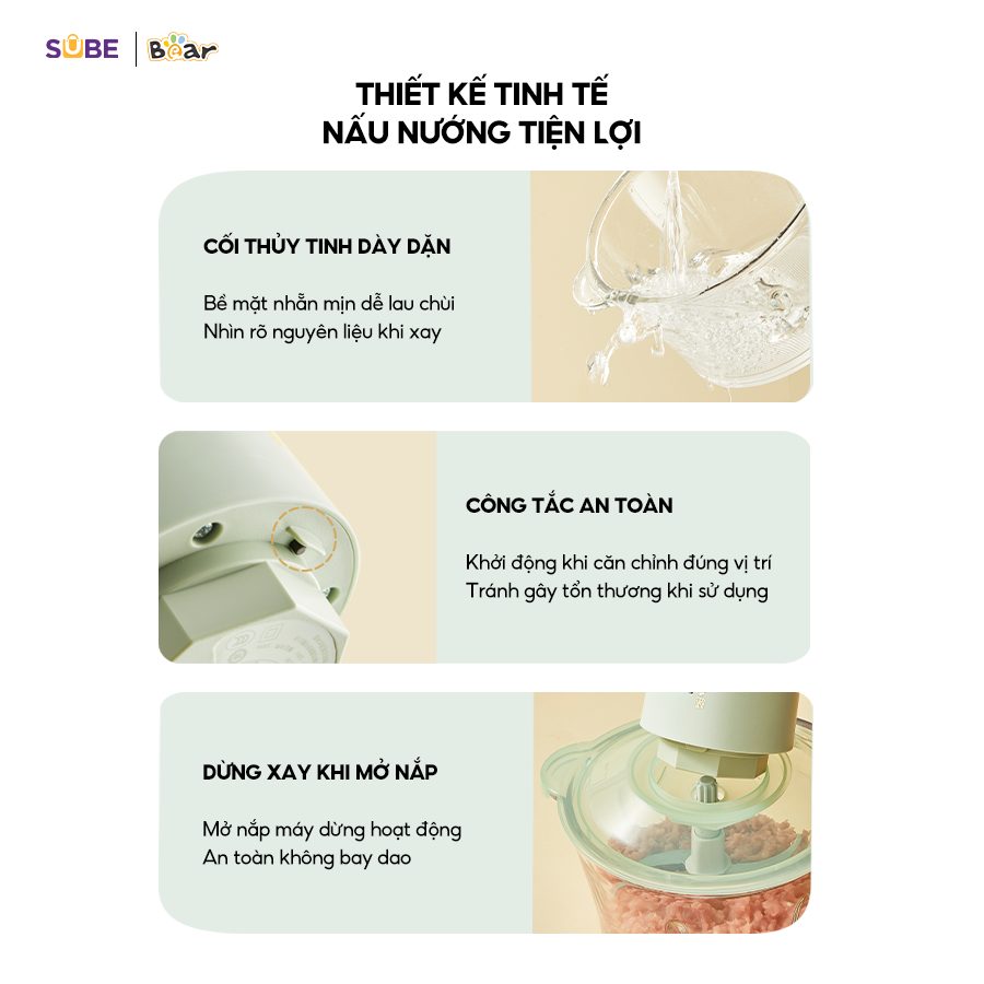 Tuy nhiên, với máy xay Bear, bạn chỉ cần cho nguyên liệu vào và máy sẽ xay nhuyễn chỉ trong vài giây. Việc này giúp tiết kiệm thời gian và công sức, đồng thời đảm bảo bữa ăn được chế biến nhanh chóng và dễ dàng, phù hợp với nhịp sống hiện đại.