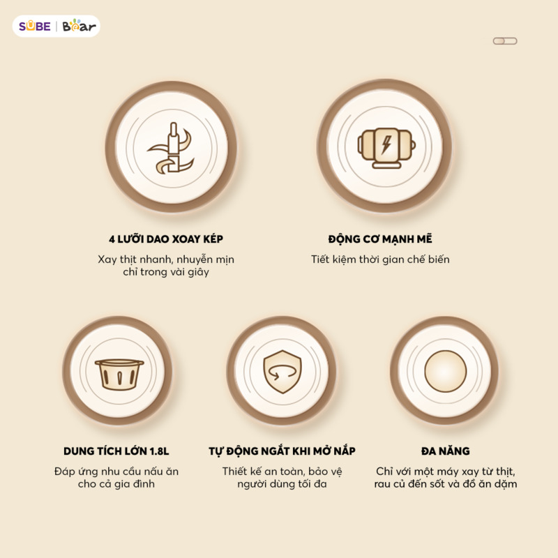 Với máy xay Bear, việc sơ chế nguyên liệu trở nên nhẹ nhàng, giúp bạn tiết kiệm thời gian, công sức để nghỉ ngơi và tận hưởng cuộc sống.