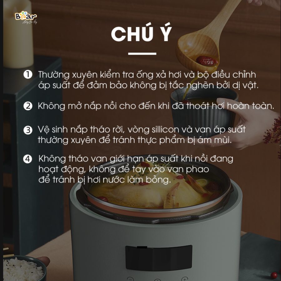 Hướng dẫn sử dụng nồi áp suất Bear 2.5L
