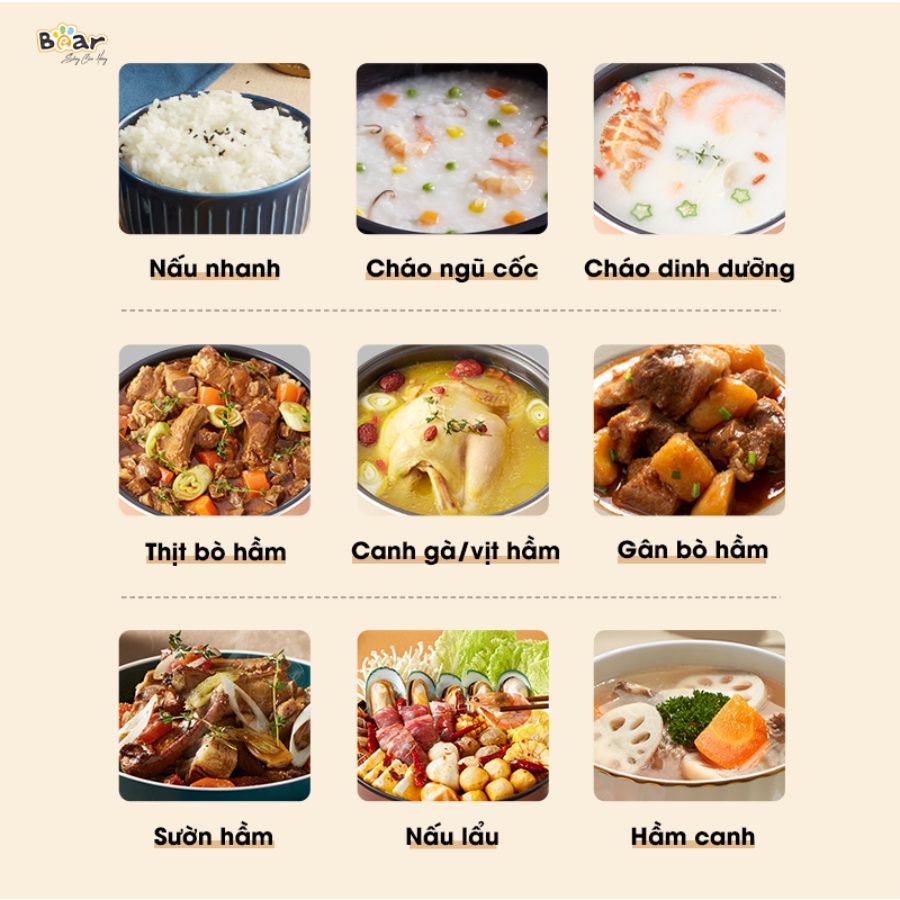 16 chức năng nấu nướng đa dạng của nồi áp suất Bear 2.5L SB-AS25L