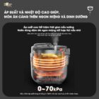 - Công nghệ áp suất cao điều chỉnh linh hoạt từ 0 ~ 70KPA:Nồi giúp thực phẩm chín nhanh gấp 10 lần so với cách nấu thông thường. Món hầm, cháo hay kho thịt đều đạt được độ mềm hoàn hảo và giữ trọn vị ngon tự nhiên.