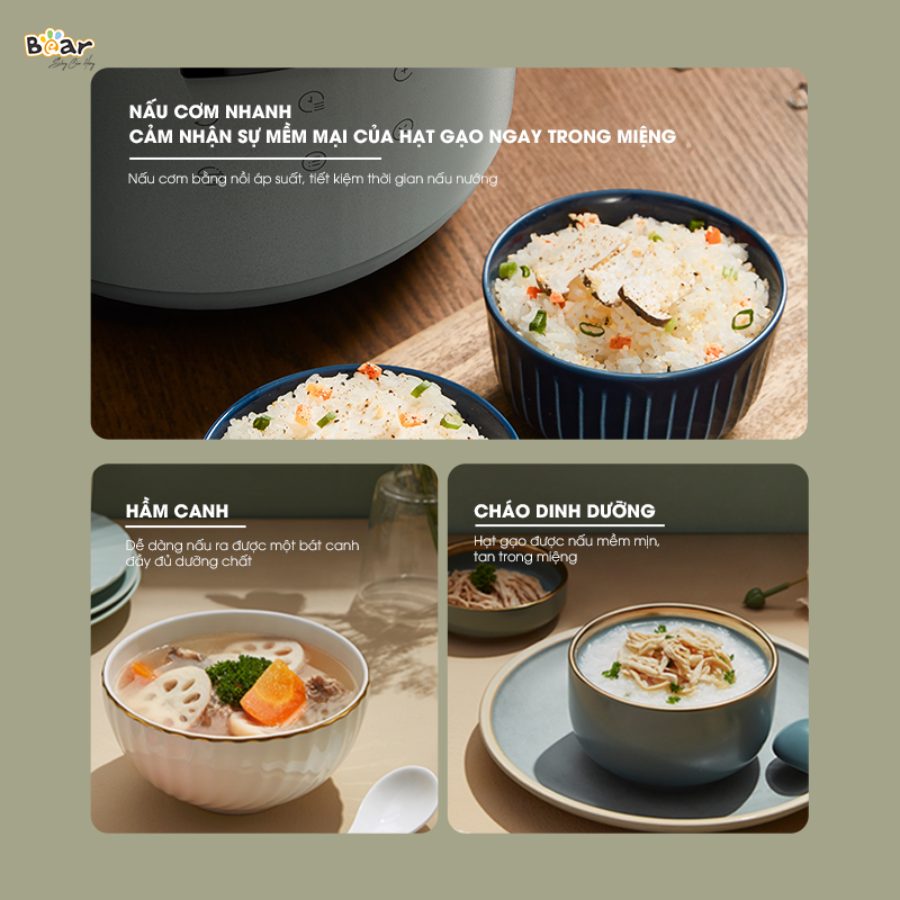 Nồi áp suất Bear 2.5L SB-AS25L nấu cháo dinh dưỡng mềm tan trong miệng