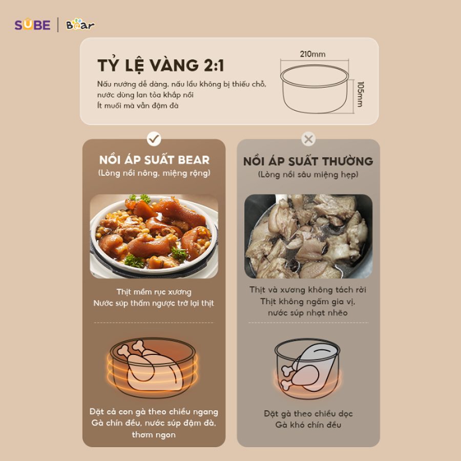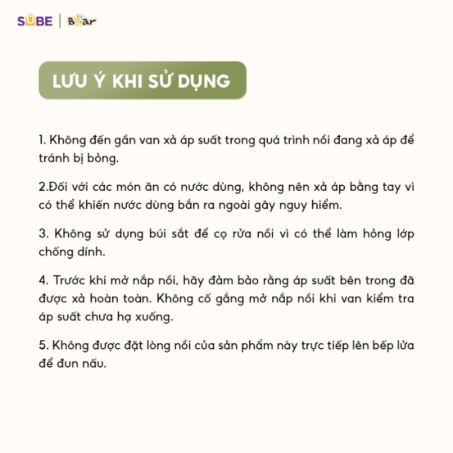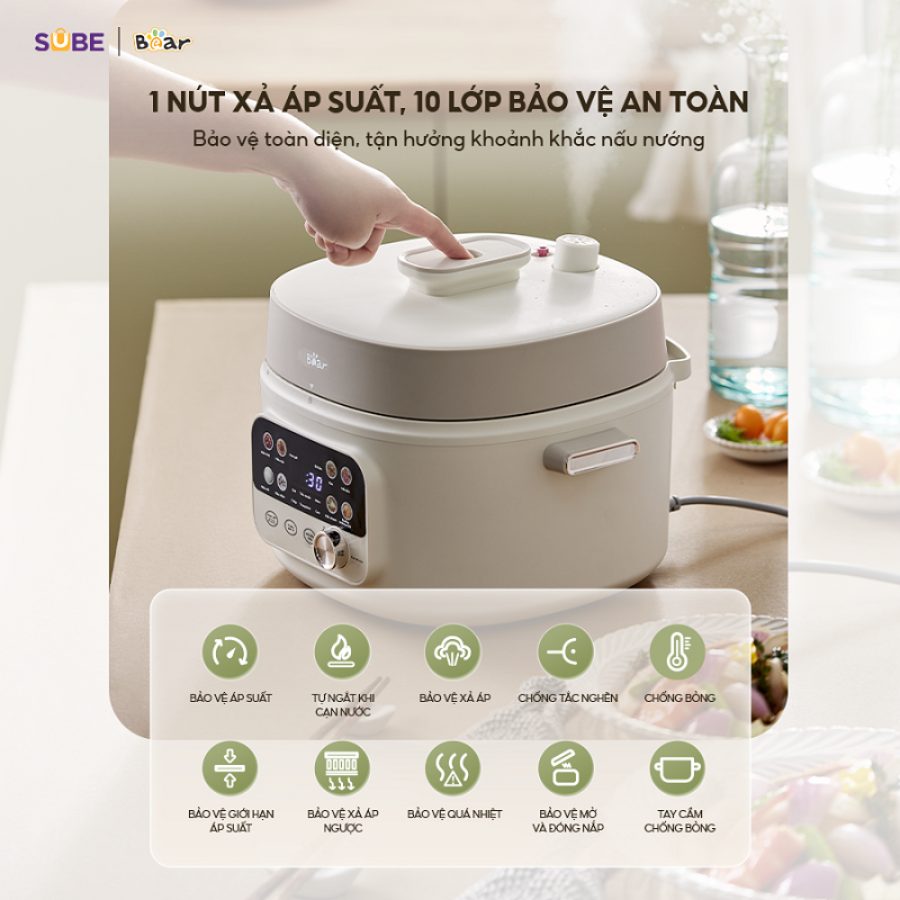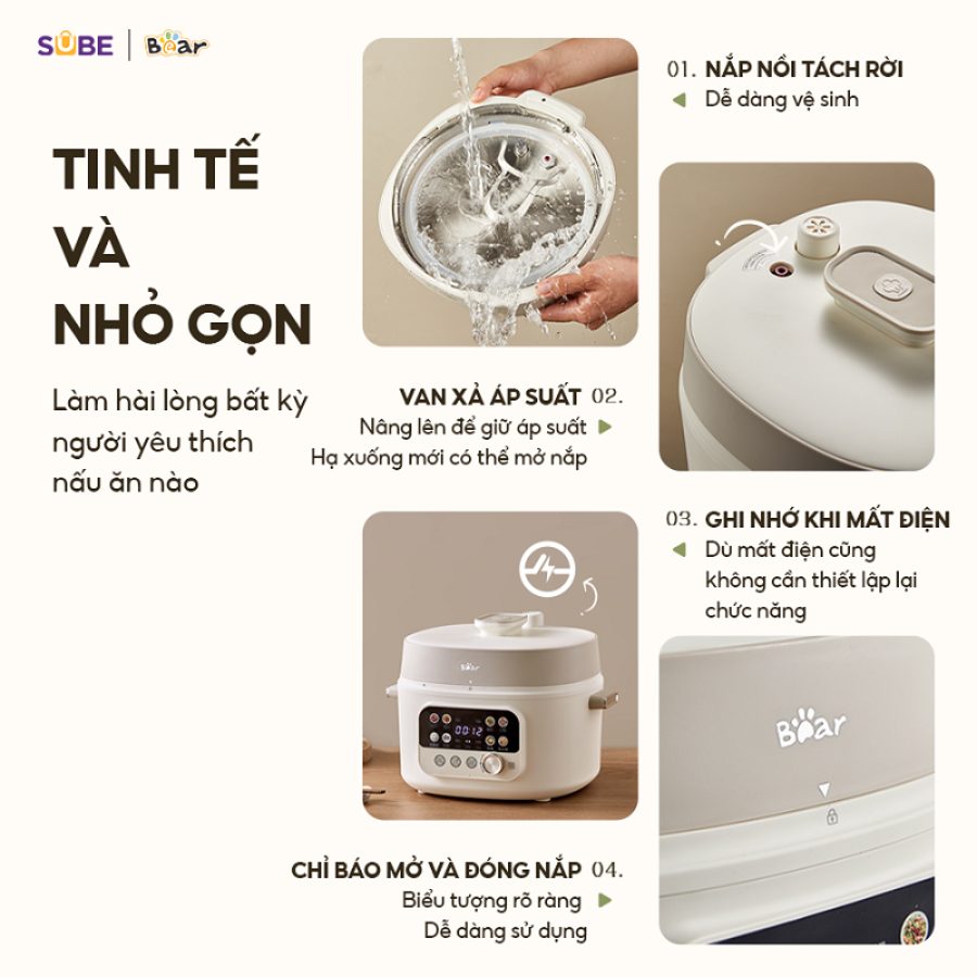 Với những ưu điểm vượt trội từ thiết kế, tính năng đến hiệu suất, nồi áp suất Bear 4L SB-AS40W xứng đáng là lựa chọn lý tưởng cho mọi căn bếp hiện đại. Cùng SUBE đi tìm hiểu chi tiết về những điểm nổi bật của em nó ngay sau đây nha!