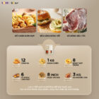 - Không gian rộng rãi: Với dung tích 5L, nồi có thể dễ dàng xử lý một lượng lớn thực phẩm cùng lúc, như nướng gà nguyên con (khoảng 3kg), chiên 1kg khoai tây, hay chế biến bữa ăn thịnh soạn cho gia đình từ 4-6 thành viên.