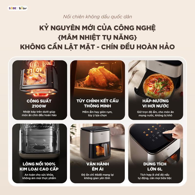 Bạn đang tìm kiếm một giải pháp nấu ăn nhanh gọn, tiện lợi và tốt cho sức khỏe? Nồi chiên không dầu Bear 6L AF-5H20J75 chính là sự lựa chọn hoàn hảo. Với dung tích lớn, công nghệ hiện đại và khả năng giảm thiểu dầu mỡ, sản phẩm này sẽ giúp bạn chế biến những món ăn ngon một cách dễ dàng và lành mạnh. Hãy cùng khám phá những ưu điểm vượt trội của chiếc nồi chiên không dầu này nhé!