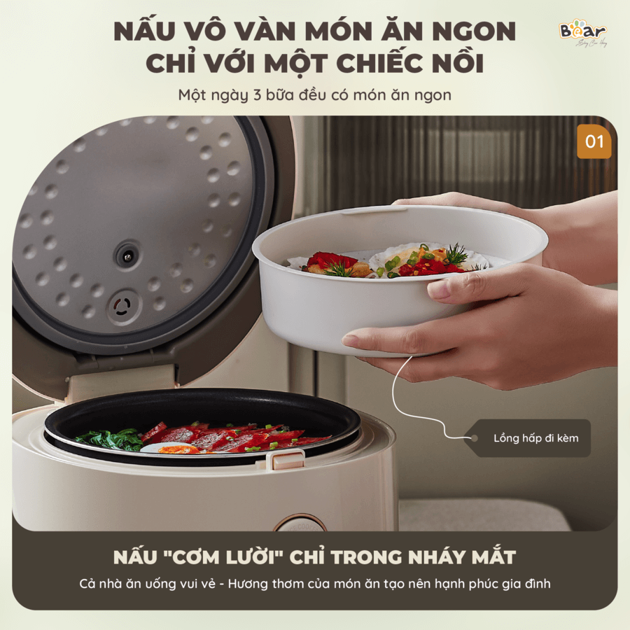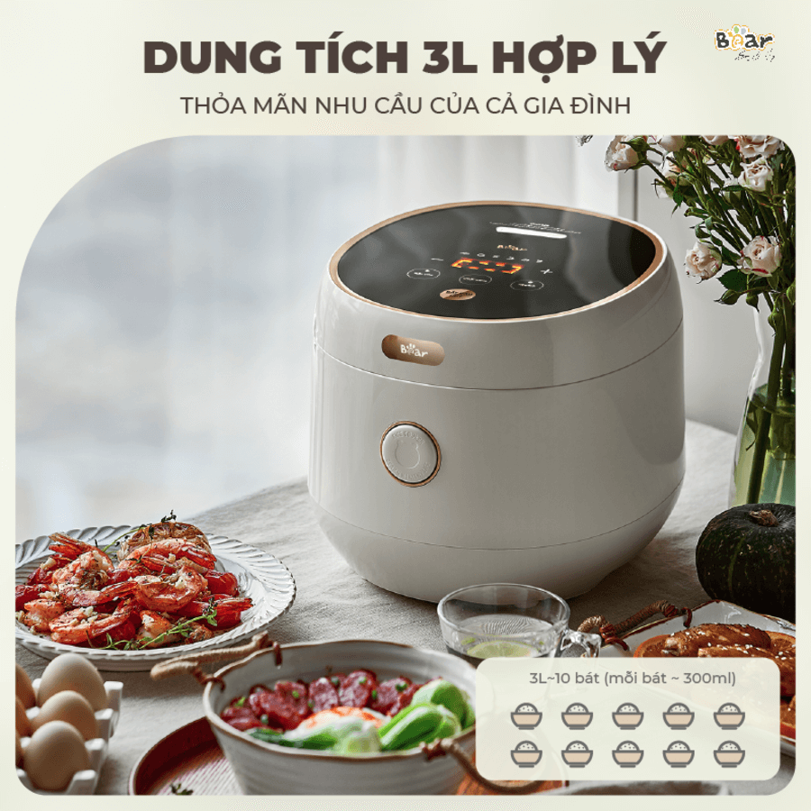 Với những tính năng vượt trội như công nghệ nấu tự động thông minh, khả năng chế biến đa dạng món ăn và thiết kế tiện lợi, nồi cơm điện Bear 3L SB-NC30B chắc chắn sẽ mang lại sự hài lòng cho mọi gia đình.