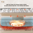 - Thiết kế vòng tập trung năng lượng: Vòng nhiệt giúp hơi nước được tạo ra liên tục và ổn định. Hơi nước thẩm thấu đều vào thực phẩm, giúp các món ăn chín đều mọi mặt.