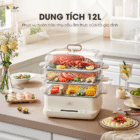 Dung tích 12L với 3 tầng hấp, phục vụ nhu cầu ẩm thực cho cả gia đình