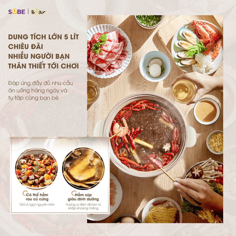 5 in 1 – Khám phá 5 công dụng của nồi lẩu Bear 5L SB-NL05F