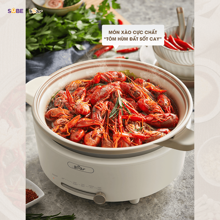 Nồi lẩu Bear 5L SB-NL05F mang đến sự tiện lợi cho việc chế biến các món xào, giúp thực phẩm chín đều, giữ trọn hương vị và màu sắc hấp dẫn.