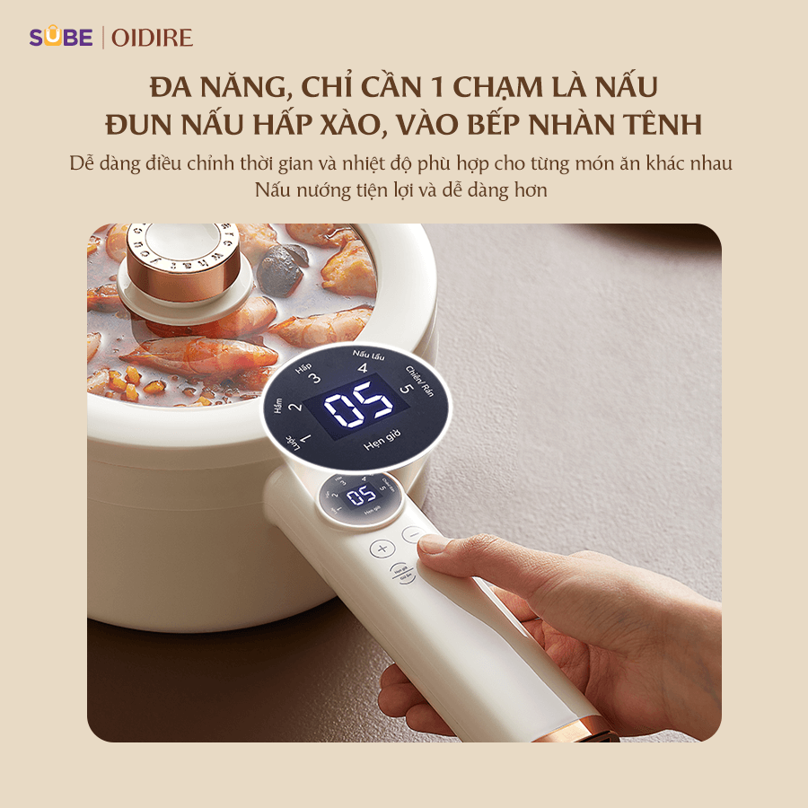 Nồi điện đa năng OIDIRE 1.8L ODI06A mang đến sự tiện lợi vượt trội với khả năng chế biến đa dạng, giúp công việc bếp núc nhẹ nhàng hơn bao giờ hết:
